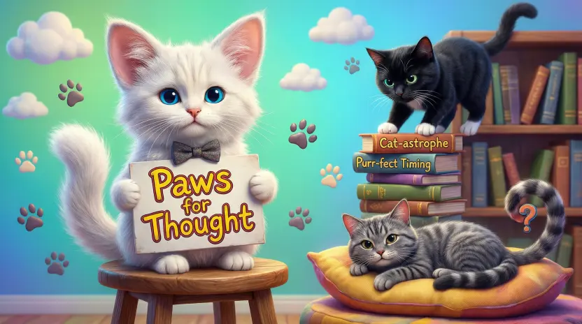 So I did what any cat-obsessed human would do. I started playing with words, twisting cat habits into jokes, and suddenly⌠boom! I was smiling again. I turned that moment into cat puns, and trust me, it worked like magic
